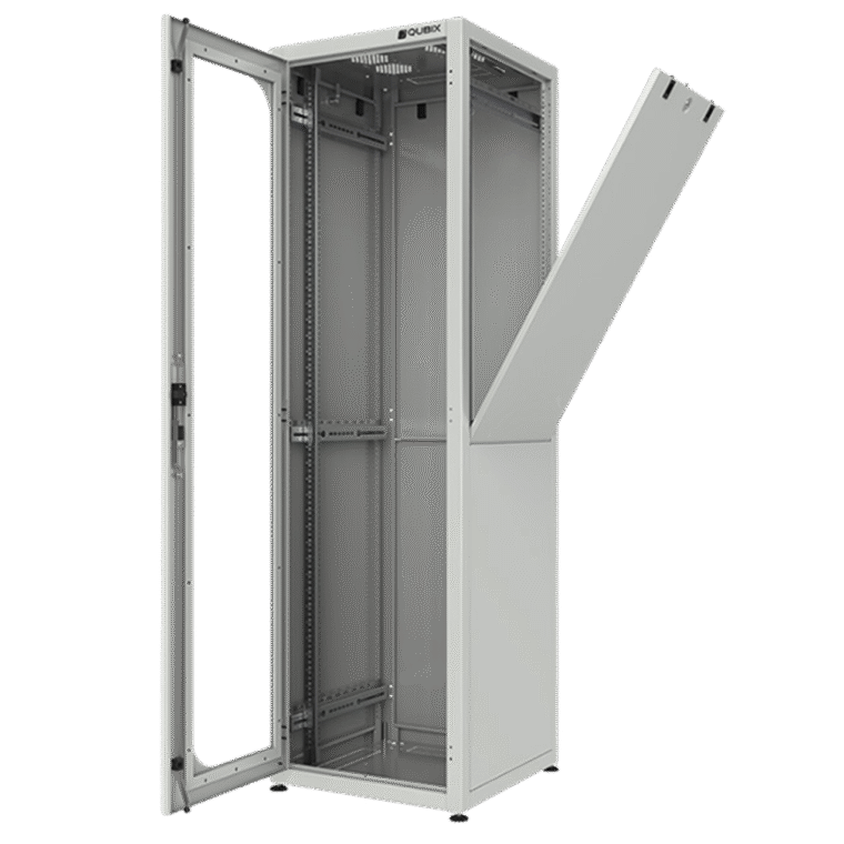 Qubix 19” mrežni ormari izrađeni su od čeličnog lima, sa staklenim vratima, ventilacijom i podesivim vodilicama.