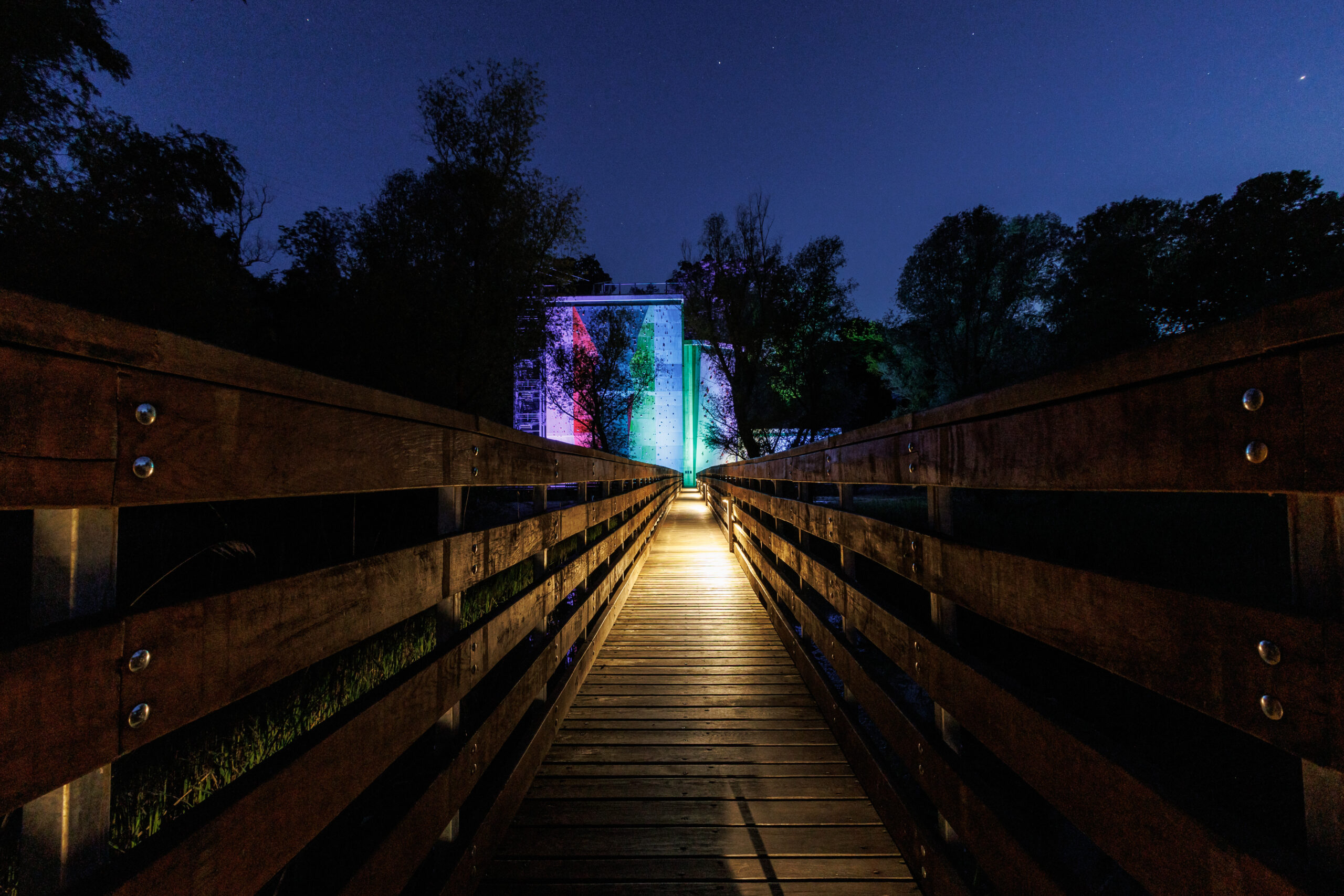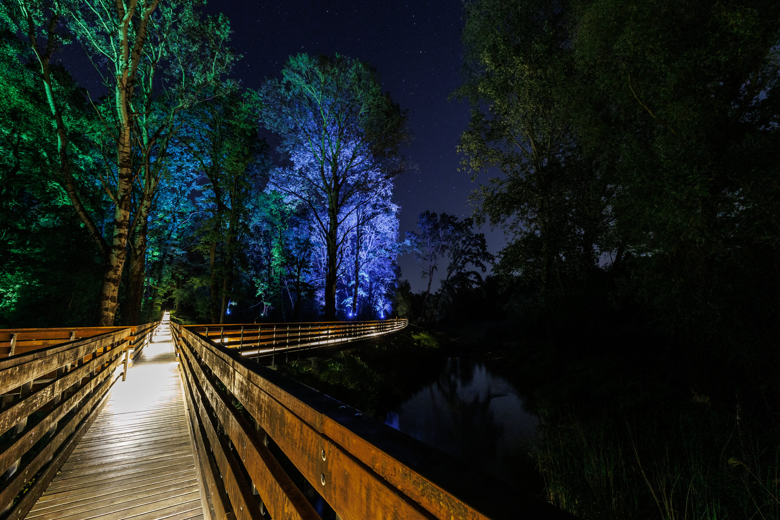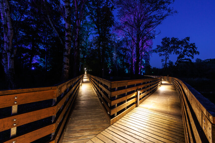 Rješenje je oblikovano tako da posjetitelj ima dojam da se svjetlost pojavljuje iz same šume, a ne iz tehnoloških elemenata.